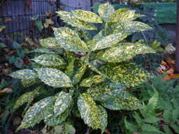 斑入り葉種もあり、葉前面にペンキを散らし
