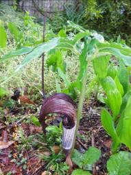 も同じ仏炎苞。花序の先の付属体は紫黒色で長さ60センチもある。