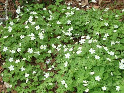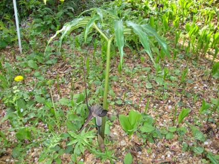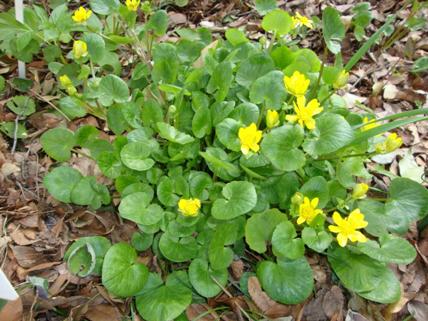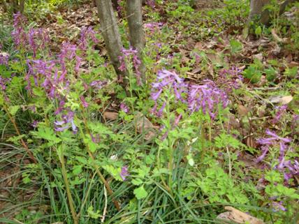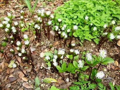 けやきの公園の花壇には山野草が、時期になるとたくさん芽をだ