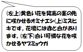 公園の花壇は、山野草に代表される、多年草がたくさん繁ってい