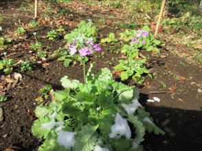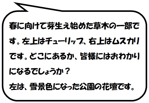 のの、少しだけ雪景色になったけやきの公園の花壇ですが、その