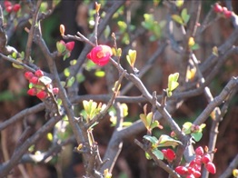 がきれいな深紅の花を咲かせて