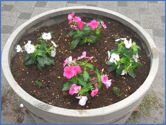 から春夏用の草花が届きました。タル花壇に植えられていますので、