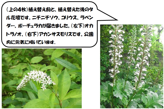 ホタルブクロ、アカンサスモリス、オカトラノオ
