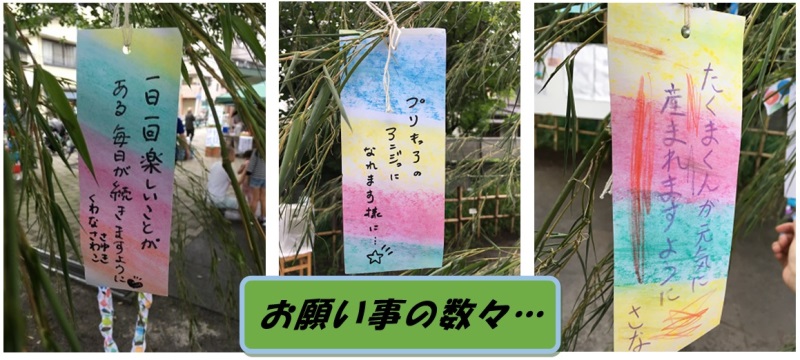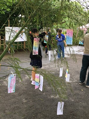 園課の協力により、公園に備えられた大きな笹の枝に、願い事を書