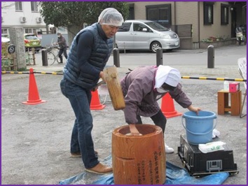 りました。蒸したてのもち米を臼にいれてつき、出来立てのお餅を