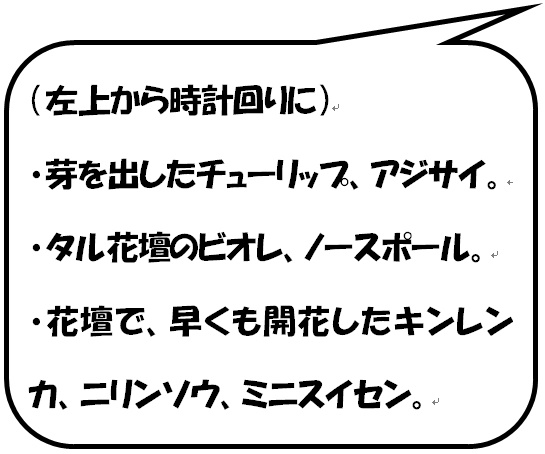 春はすぐそこまで来ています。様々な草花の開花や満開の様子