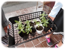 雨模様でしたが、ポットに入れた苗を持ってきて頂き、公園の
