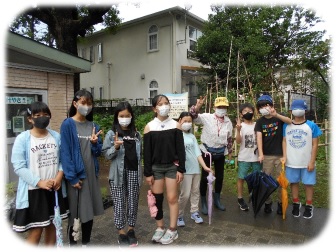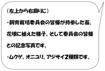 員会の皆様が先生方と一緒に来園し、春から学校で育てた