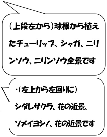 それぞれ彩りよく、春の饗宴をしているようです。区の花で