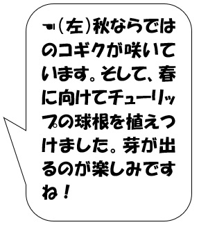 に植えましたので、来年の春には、色とりどりのチューリップ