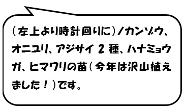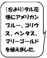 次々と夏の草花が咲いてきます。タル花壇に植えた4種の苗