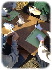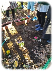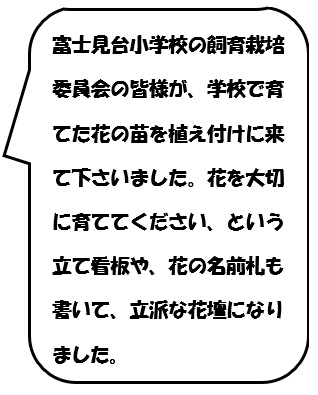 して、学校で育てた花の苗を6株、花壇に植えつけてください