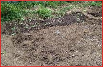 ちこちに穴を掘りました。穴の中に、抜いた草を入れて土で