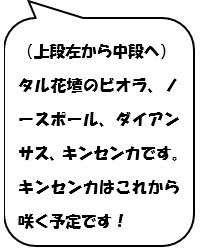 ビオラ、ノースポール、キンセンカ、ダイアンサ